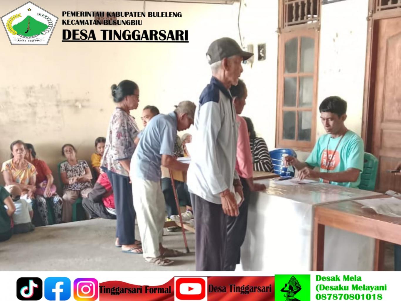 Desa Tinggarsari — Sebanyak 143 Keluarga Penerima Manfaat (KPM) di Desa Tinggarsari resmi menerima Bantuan Langsung Tunai Sementara (BLTS), sebuah program bantuan sosial dari Kementerian Republik Indonesia melalui Direktorat Pemberdayaan Kelompok Rentan. Penyaluran bantuan ini berlangsung dengan tertib dan lancar di pasar desa Banjar Dinas Kanginan, Desa Tingggarsari.