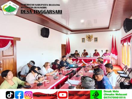 Pemerintah Desa Tinggarsari melaksanakan rapat penting pada bulan Desember yang membahas tiga agenda utama, yaitu penyusunan Rancangan Anggaran Pendapatan dan Belanja Desa (APBDes) Tahun Anggaran 2026, rapat rutin bulanan, serta perkembangan Koperasi Desa Merah Putih Tinggarsari. Kegiatan ini berlangsung di Ruang Rapat Kantor Perbekel Tinggarsari dengan dihadiri Perbekel, Perangkat Desa, Ketua BPD dan Anggota, Ketua Koperasi Merah Putih dan Pengurus Koperasi Merah Putih.