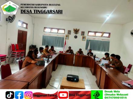 Pemerintah Desa Tinggarsari melaksanakan kegiatan evaluasi rancangan Anggaran Pendapatan dan Belanja Desa (APBDes) Tahun Anggaran 2026 bertempat di Kantor Camat Busungbiu. Kegiatan ini merupakan bagian dari tahapan perencanaan dan penetapan APBDes agar sesuai dengan ketentuan peraturan perundang-undangan yang berlaku.