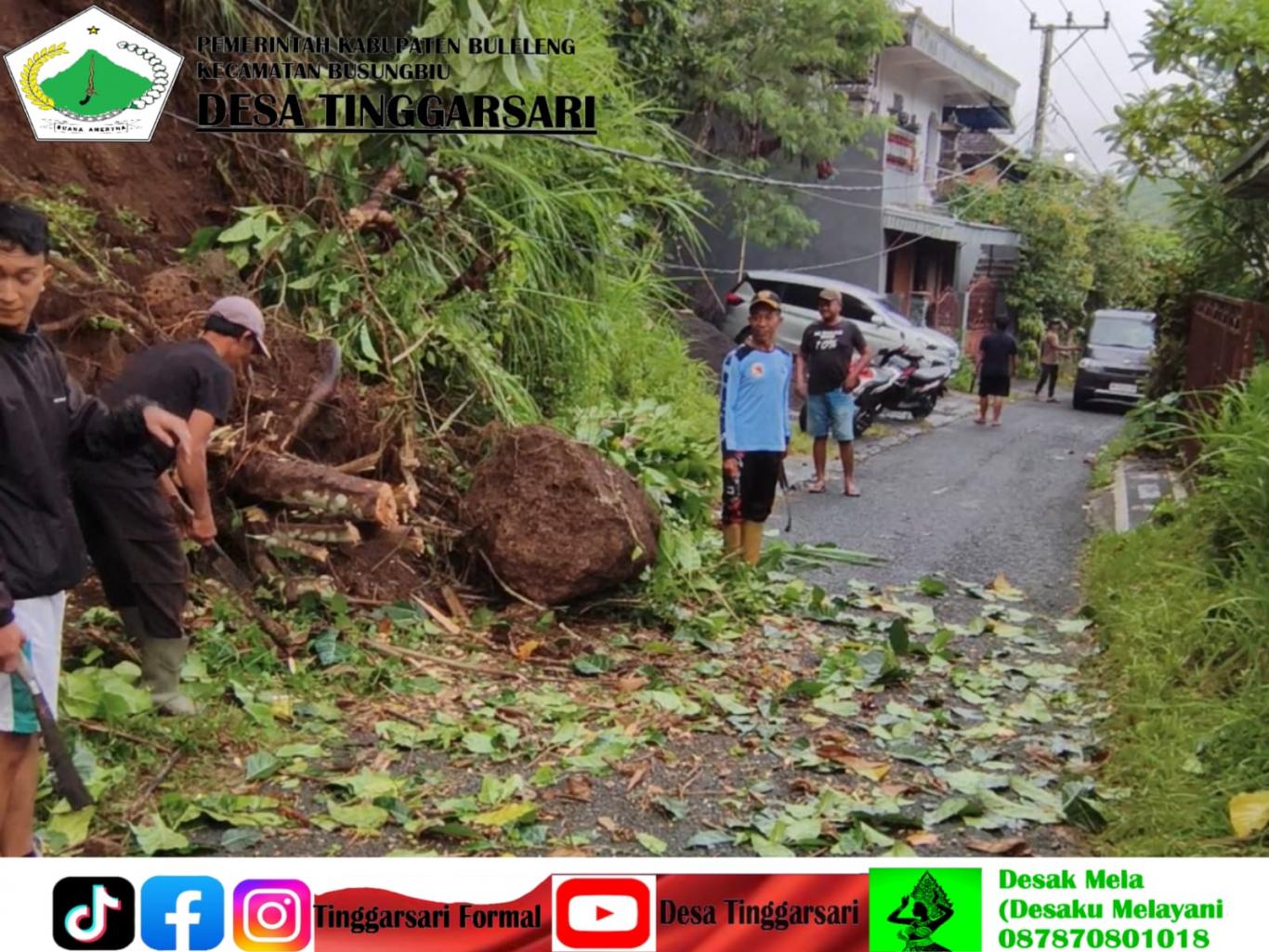 Menanggapi kondisi tersebut, Pemerintah Desa (Pemdes) Tinggarsari dengan cepat bergerak bersama masyarakat setempat melaksanakan kegiatan pembersihan. Dengan mengedepankan semangat gotong royong, warga dan perangkat desa bahu-membahu membersihkan material longsor serta mengevakuasi pohon tumbang yang menutup badan jalan.
