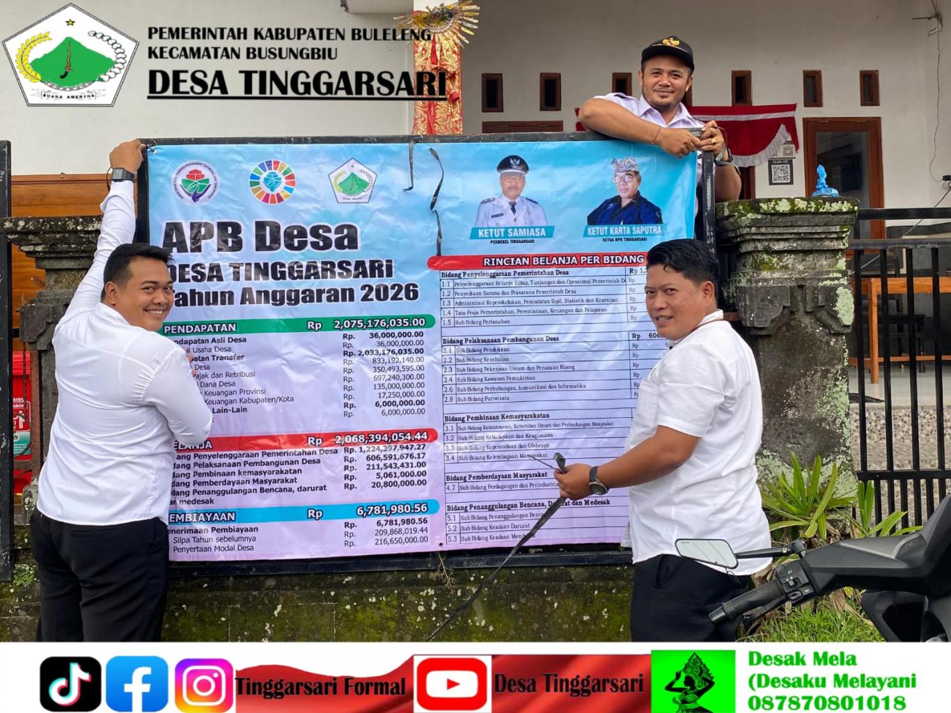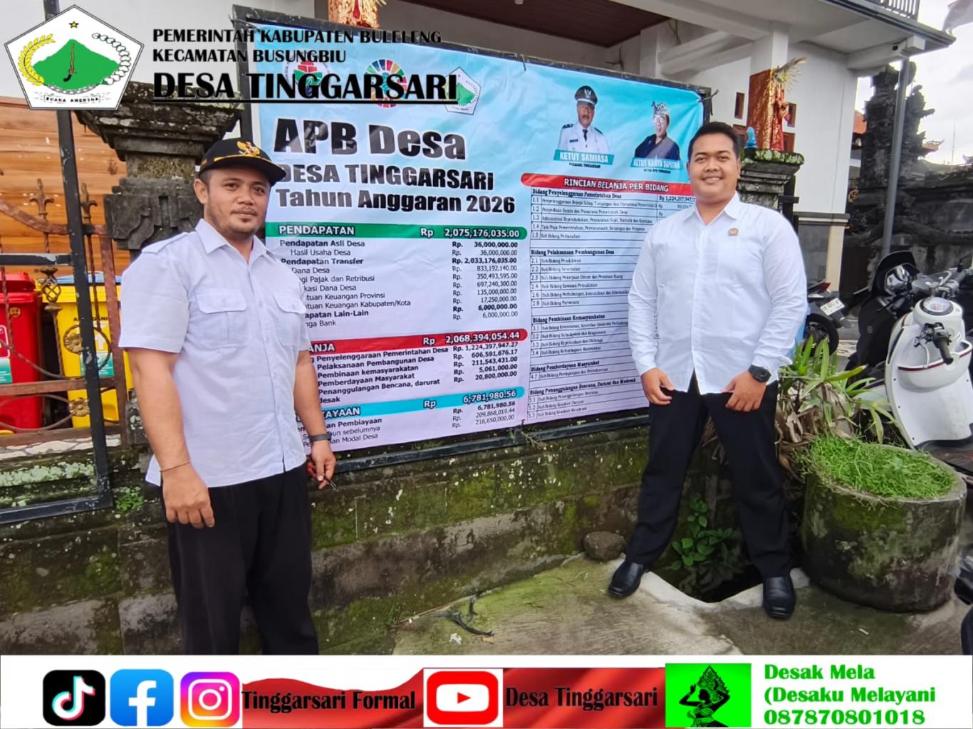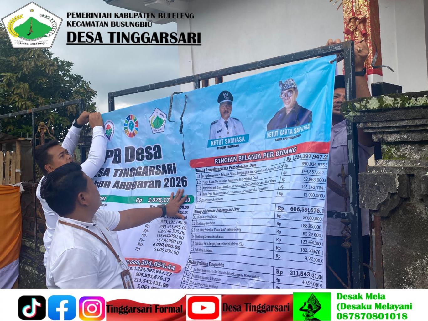 Pemerintah Desa Tinggarsari melaksanakan pemasangan spanduk informasi Anggaran Pendapatan dan Belanja Desa (APBDes) Tahun Anggaran 2026 sebagai bentuk transparansi dan keterbukaan informasi publik kepada masyarakat.