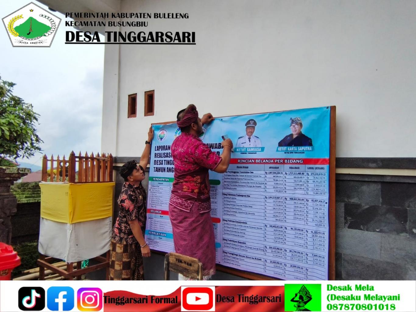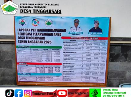 Perbekel Desa Tinggarsari melalui perangkat desa menyampaikan bahwa pemasangan baliho ini merupakan wujud keterbukaan informasi publik serta komitmen Pemerintah Desa Tinggarsari dalam menyampaikan pengelolaan keuangan desa secara jelas dan bertanggung jawab kepada seluruh masyarakat.