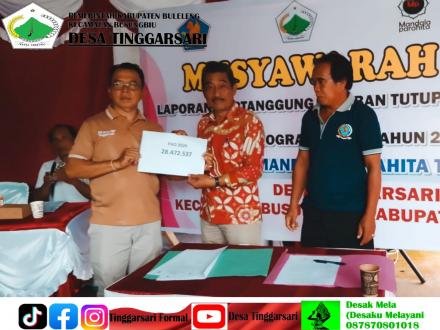 Pada sesi akhir kegiatan, dilaksanakan penandatanganan berita acara Laporan Pertanggungjawaban Tutup Buku Tahun 2025 dan Program Kerja Tahun 2026 BUMDesa Mandala Parahita Desa Tinggarsari, serta penandatanganan berita acara pembagian Pendapatan Asli Desa (PAD) kepada Desa. Penandatanganan tersebut menjadi bentuk pengesahan dan kesepakatan bersama atas hasil Musyawarah Desa yang telah dilaksanakan.