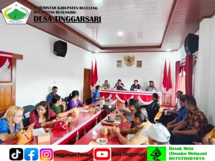 Rapat tersebut dihadiri oleh Perbekel Desa Tinggarsari, Sekretaris Desa, seluruh Perangkat Desa, Bandesa Adat, Pendamping Sosial, Prajuru Adat, Ketua TP PKK Desa Tinggarsari, serta Operator Desa. Kehadiran berbagai unsur ini menunjukkan adanya kolaborasi antara pemerintah desa dan unsur adat dalam mendukung keberhasilan pemutakhiran data.